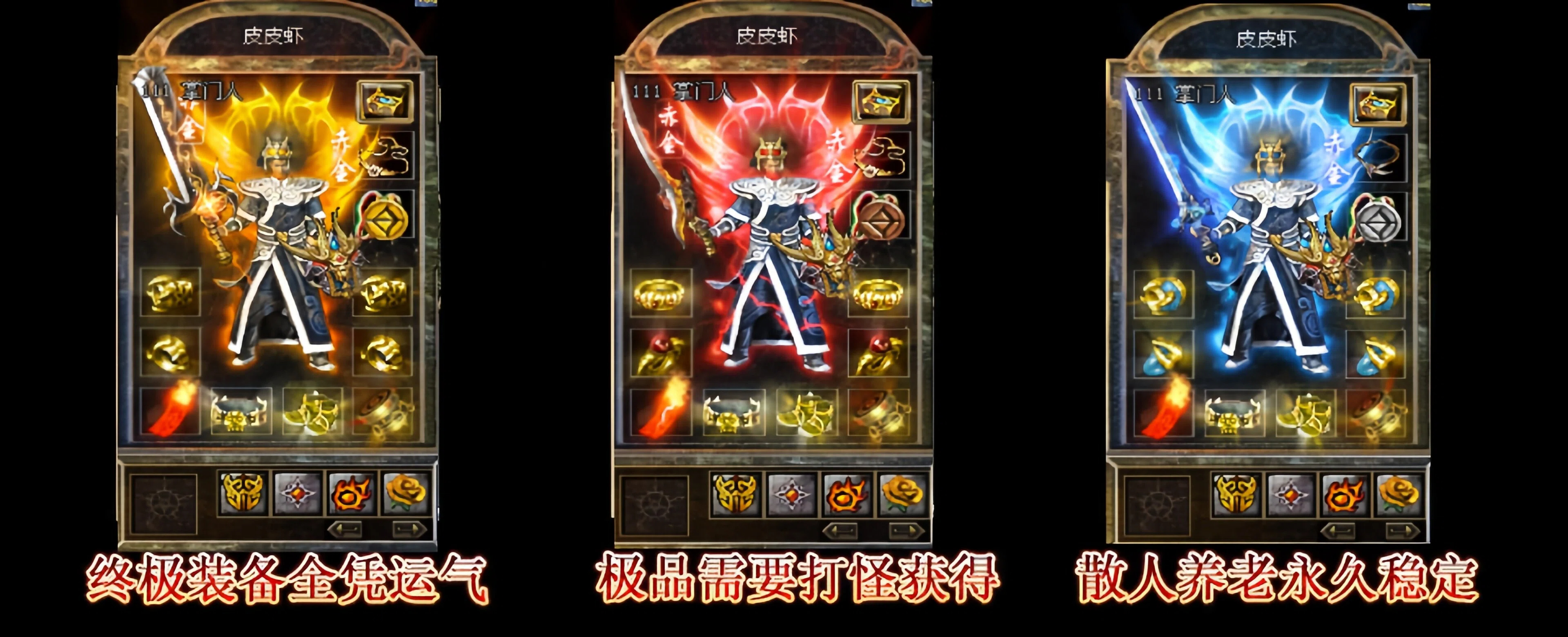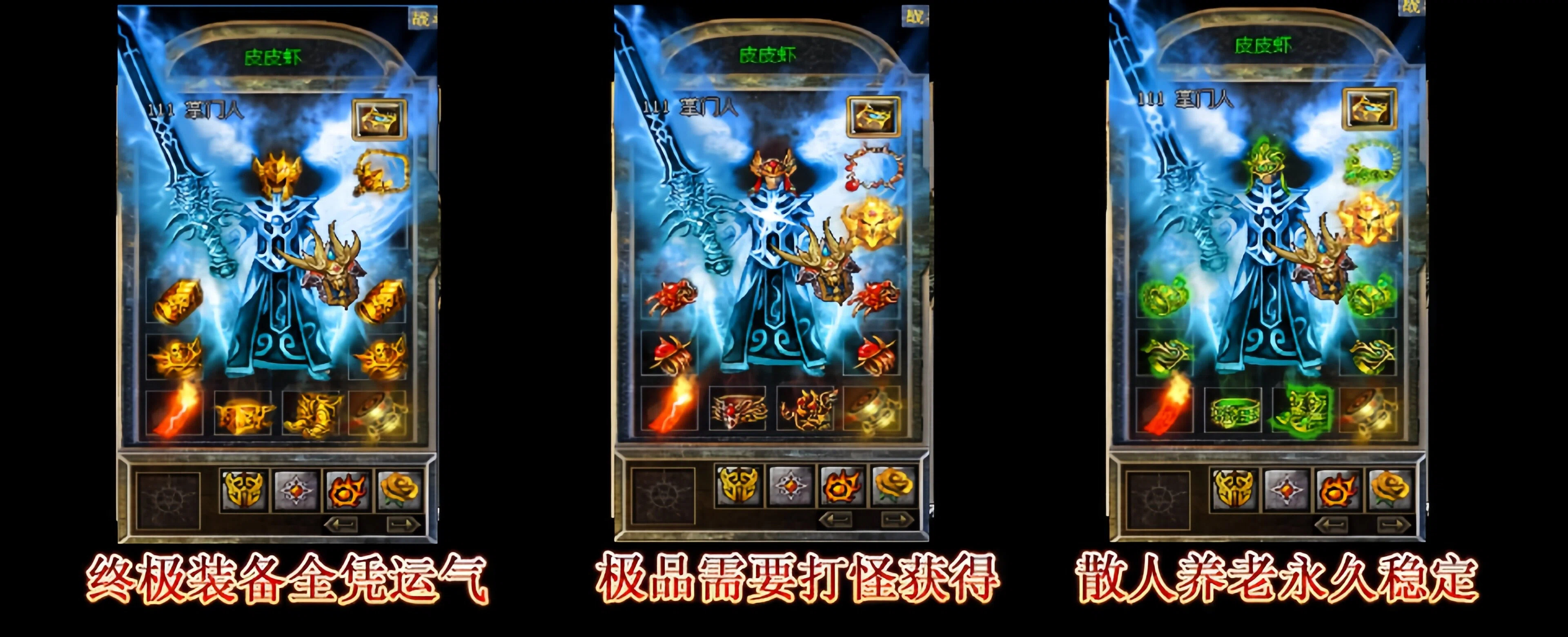 战士:出刀狠快!法师:群攻狠猛!道士:宝宝狠牛逼!